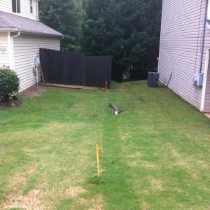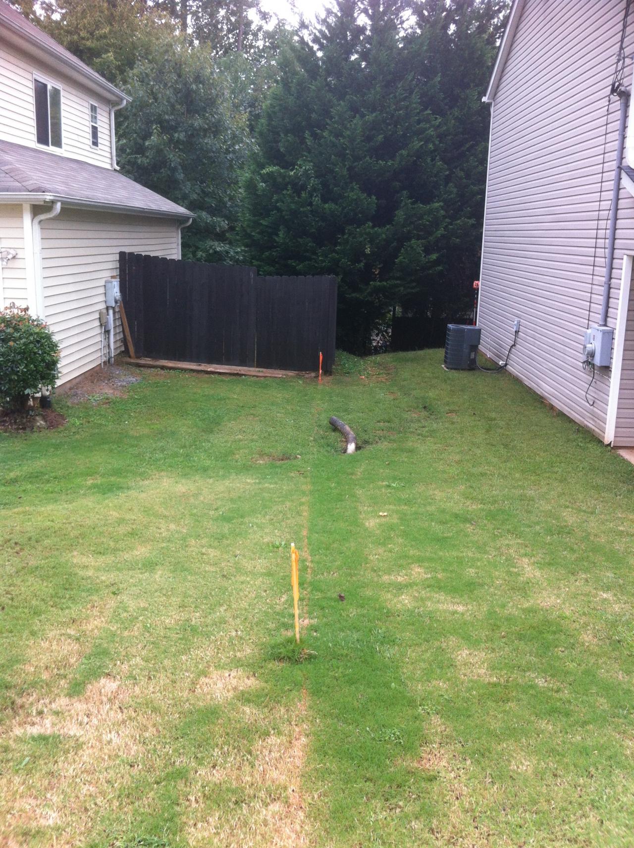 Neighbor to the left encroached twice; first by erecting a privacy fence 8 inches over the line, and second by installing a french drain with black tubing extending over the property line without a drainage easement.